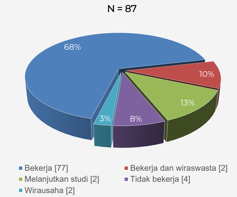 Sekitar 2 alumni menjalankan kegiatan ganda sebagai profesional sekaligus wirausahawan, mencerminkan semangat inovatif dan adaptif lulusan. - Wirausaha (3%)