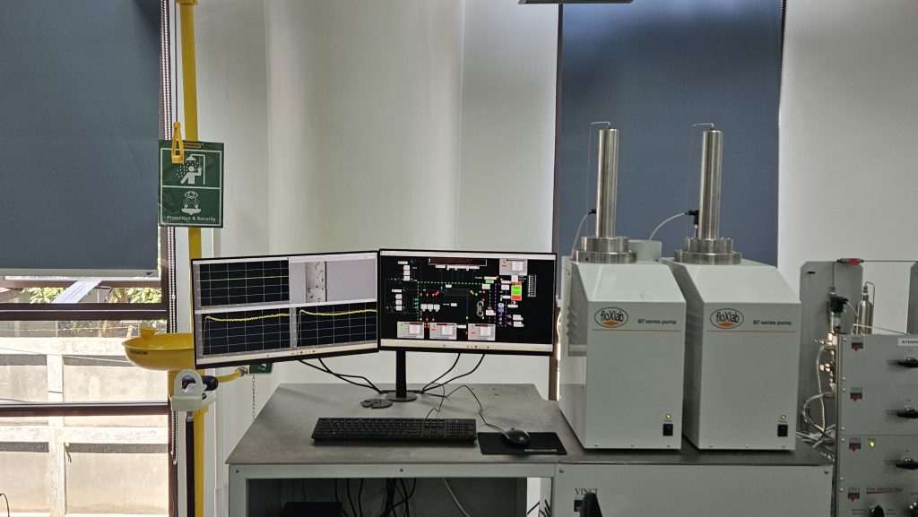 Alat untuk menganalisis perilaku tekanan-volume-temperatur (PVT) dan karakteristik fasa dari fluida reservoir di berbagai kondisi operasi. - Syringe Pump 1 & Syringe Pump 3